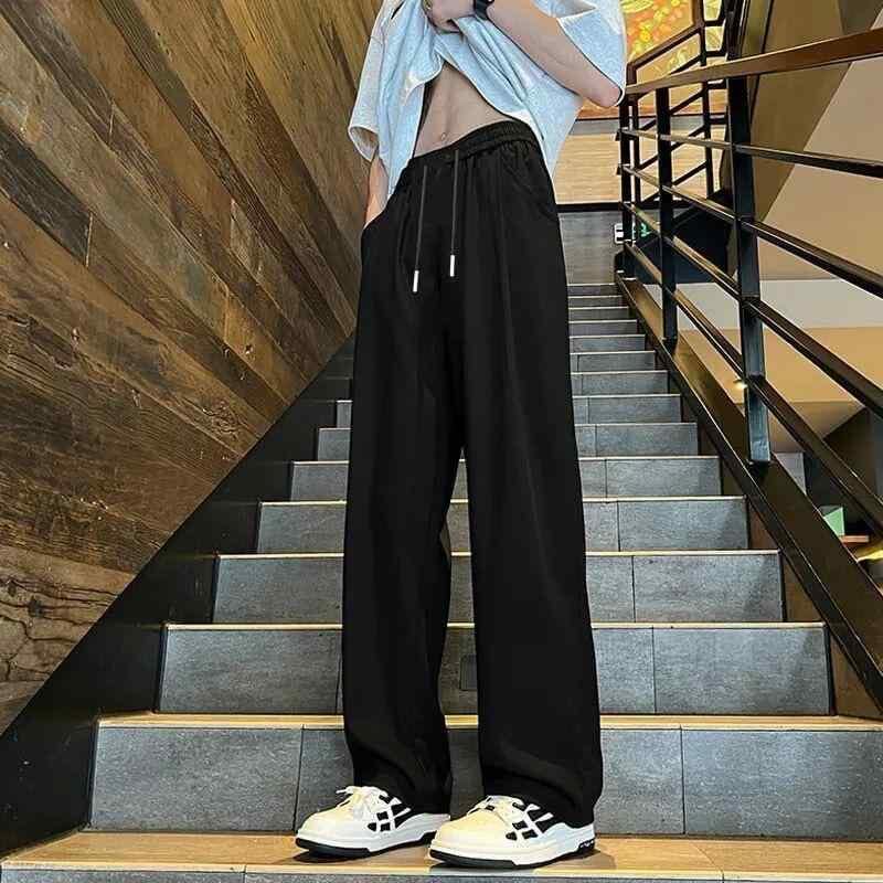 スラックス メンズ 男性用 夏用 薄手 接触冷感 ゆったり ストレート カジュアル ロングパンツ ドレープ感 デザイン性 通気性 伸縮性 イージーケア ポリエステル素材