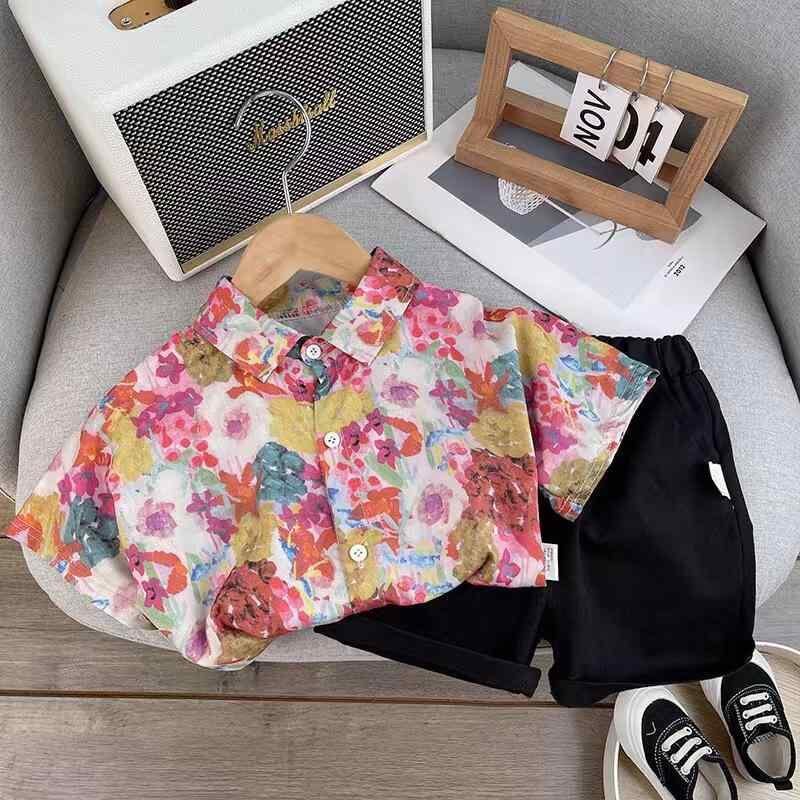 ・カテゴリ: 子供服セットアップ・性別: 男女兼用・スタイル: 韓国風・セット種類: パンツセット・セット点数: 2点セット・対象年齢: 1〜3歳 (80〜100cm)・袖丈: 半袖・パンツ丈: ショート・生地加工: 柔らか加工・厚さ: 薄手・柄: 花柄・主な素材: 綿90%・開閉様式: プルオーバー・カラー: 花柄・サイズ展開: 80cm、90cm、100cm、110cm、120cm