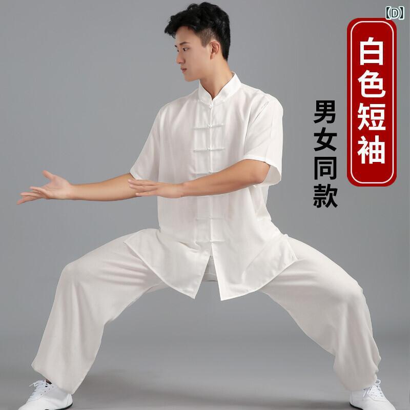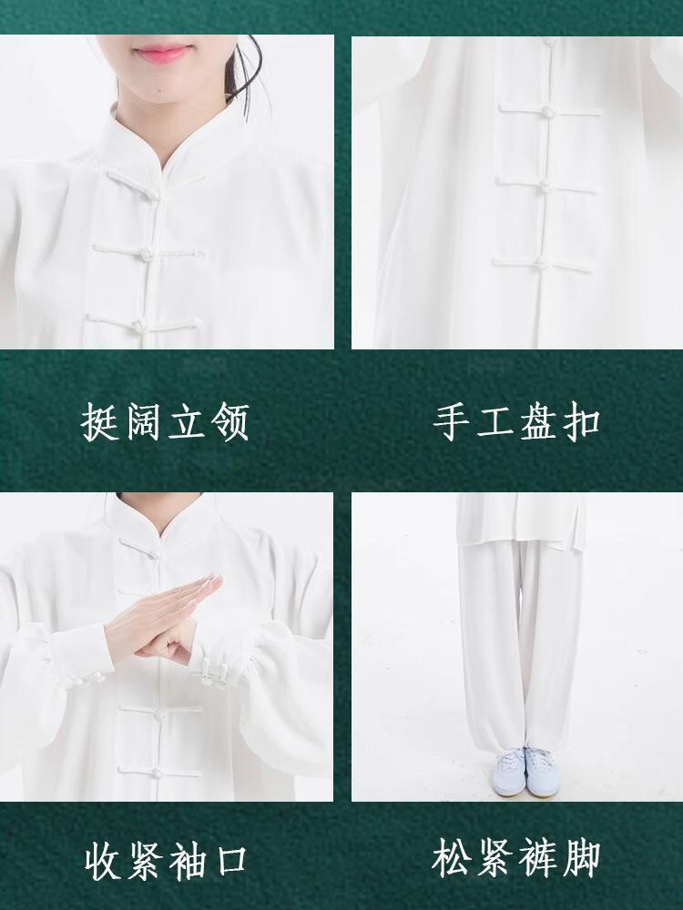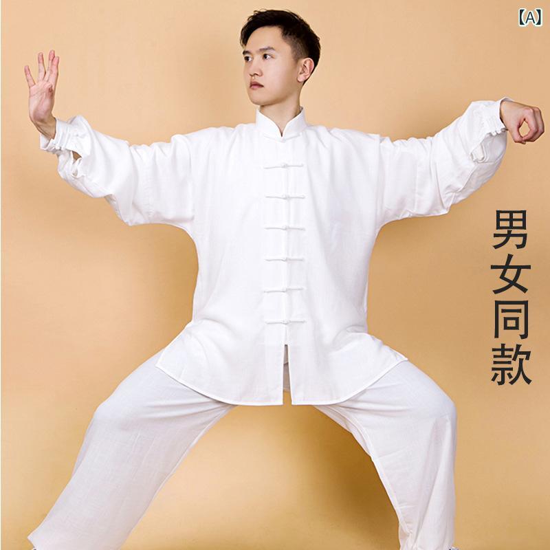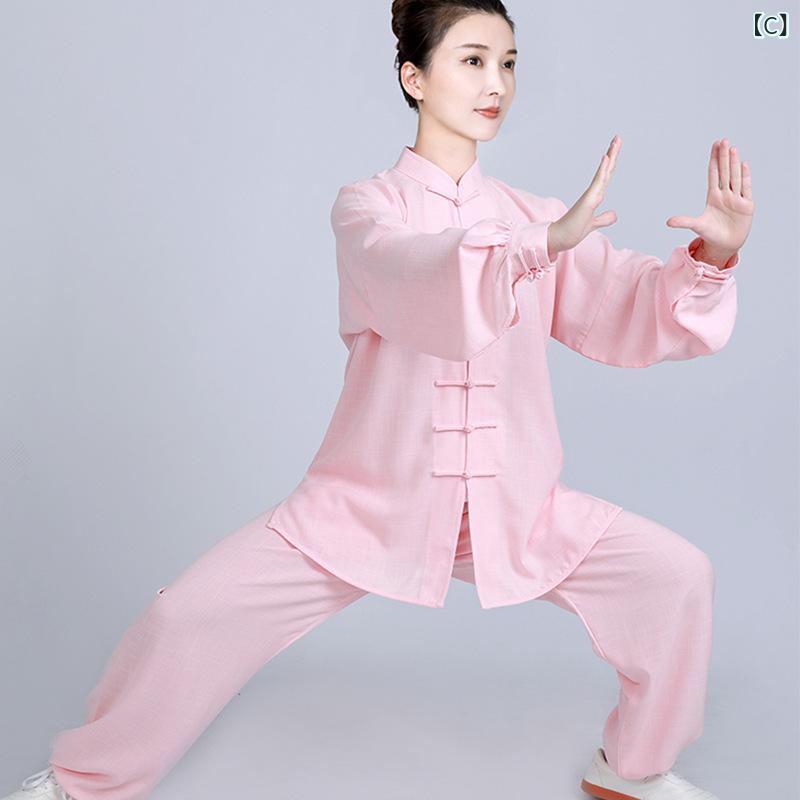 太極服 男女兼用 綿麻 ポリエステル 再生繊維 無地 長袖 上下セット 武道 練習着 稽古着 トレーニングウェア 高級感 フィットネス 朝練 ホワイト ブラック ピンク