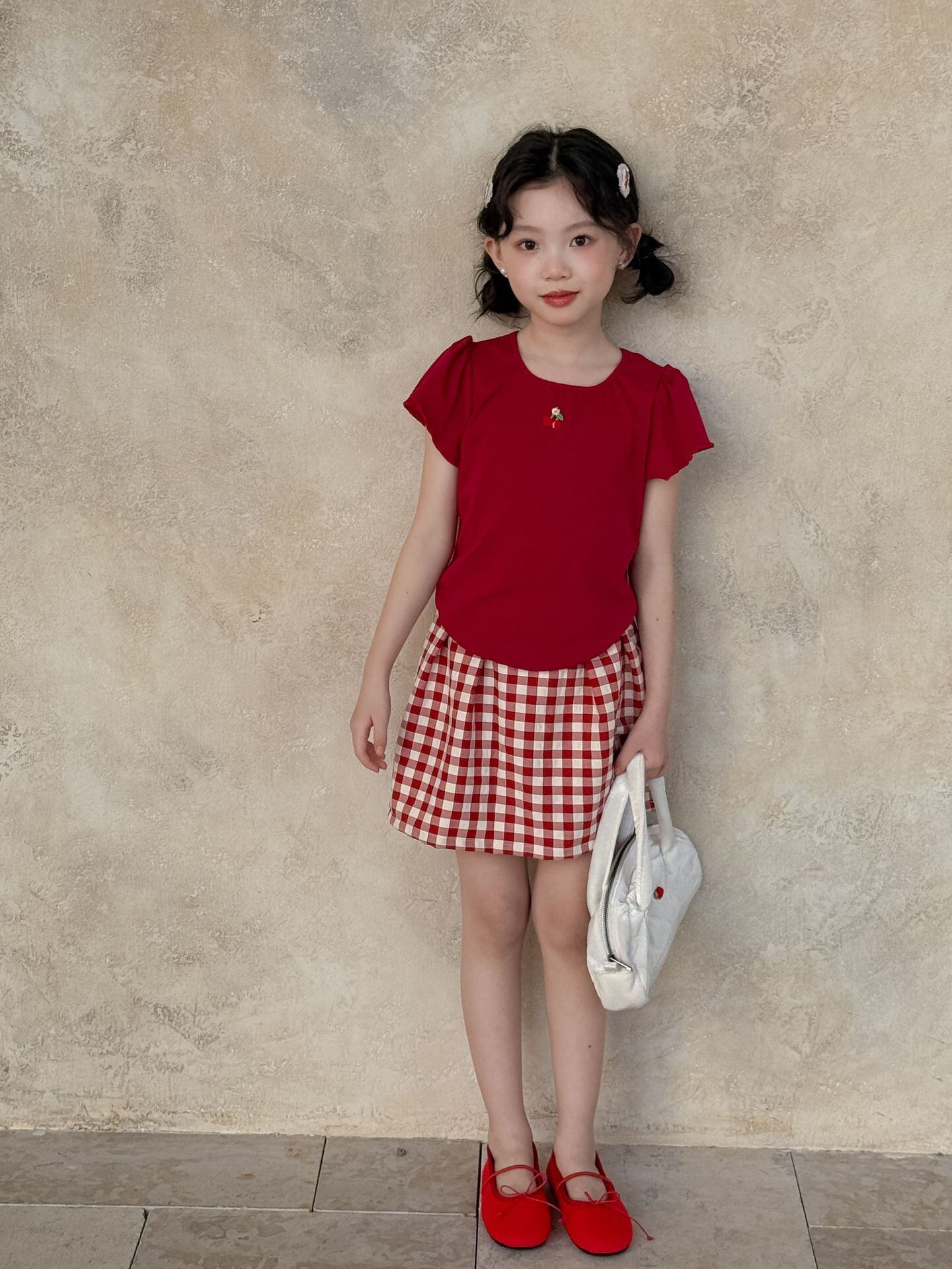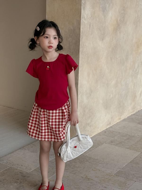 スカート キッズ 女の子 赤チェック柄 韓国風 ハイウエスト Aライン フレア ショート丈 綿素材 かわいい 夏服 普段使い お出かけ カジュアル