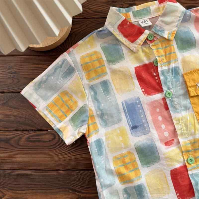 シャツ キッズ 子供 男女兼用 花柄 半袖 綿100% 接触冷感 涼しい おしゃれ カジュアル 襟付き 開襟 ビーチ リゾート 普段使い お出かけ トップス 3歳 8歳