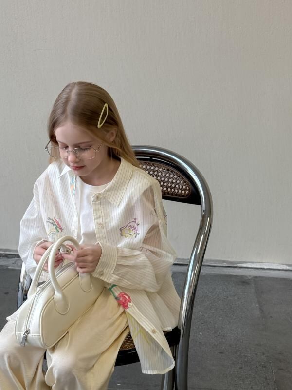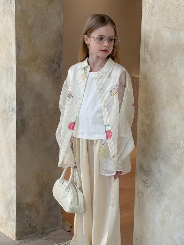 シャツ キッズ 女の子 レトロ グラフィティ柄 ストライプ 襟付き 長袖 コットン ブラウス ライトアウター 夏服 子供服 上品 カジュアル 通学 普段使い トップス 羽織り 肌触りソフト 通気性 お出かけ