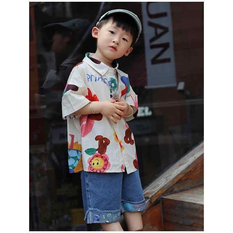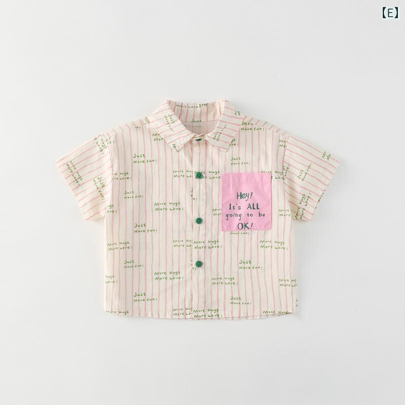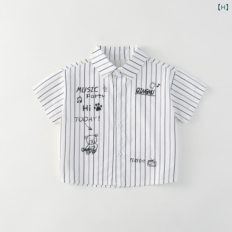 シャツ キッズ ベビー 男の子 女の子 男女兼用 綿100% 純綿 半袖 キャラクタープリント 総柄 英字ロゴ 花柄 襟付き 開襟 通気性 柔らかな肌触り ソフト 快適な着心地 肌に優しい かわいい 韓国風 カジュアル おしゃれ トレンド トップス