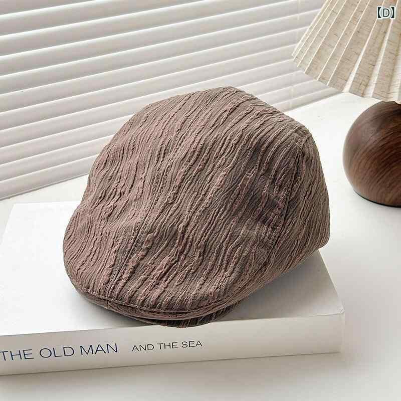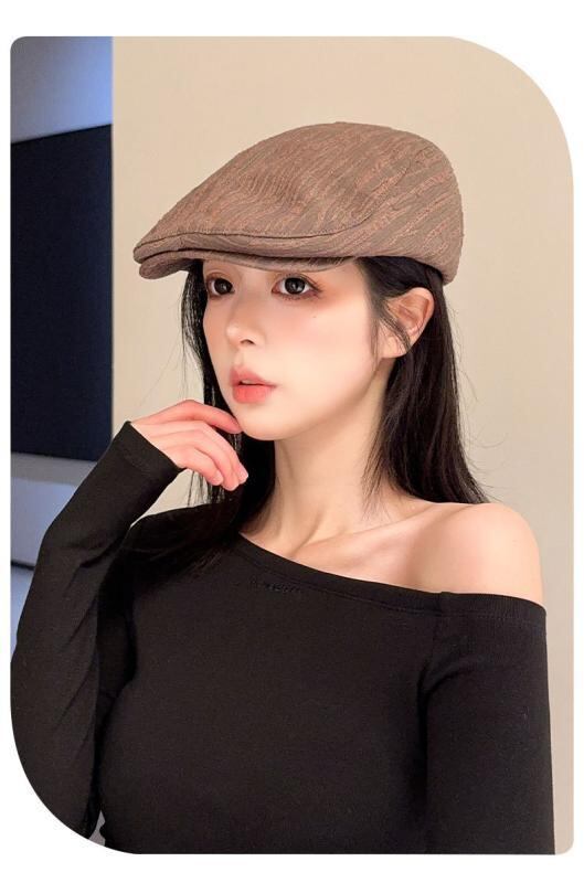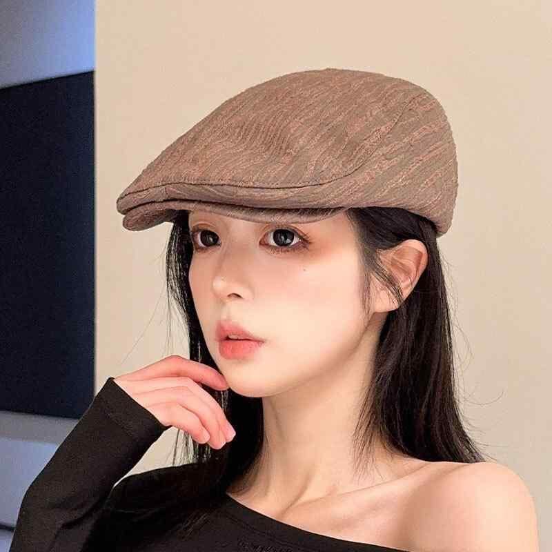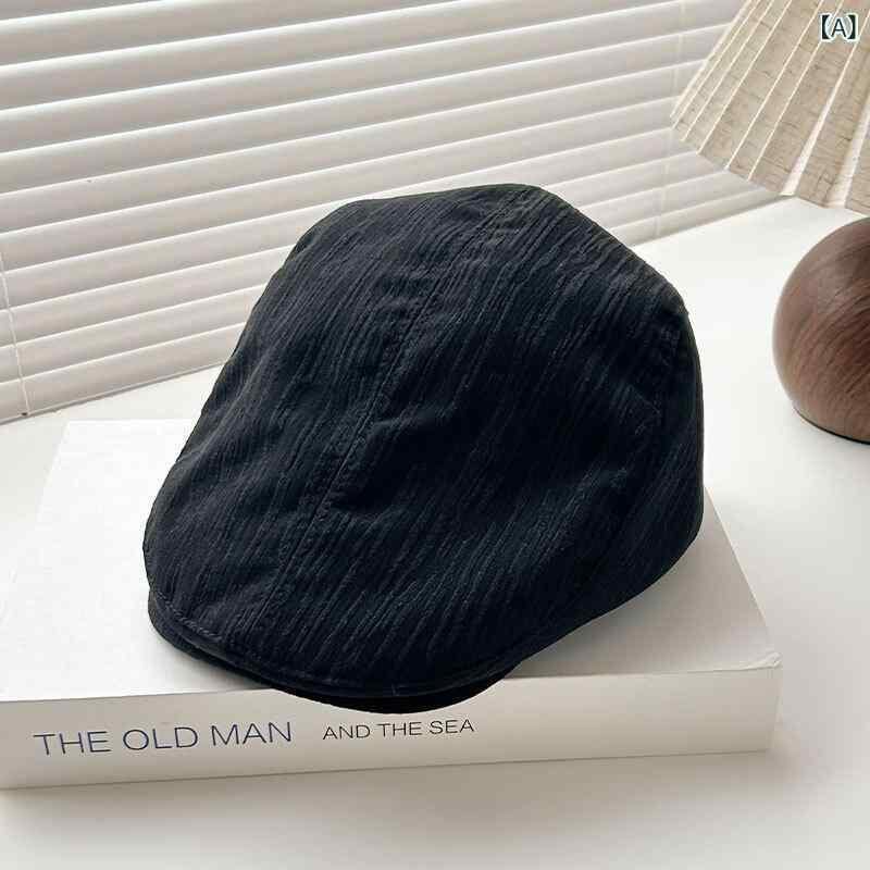 キャスケット プリーツ ストライプ柄 ショートブリム 帽子 個性的 おしゃれ 街歩き お出かけ カジュアルスタイル 日よけ 紫外線対策 通気性 綿 ポリエステル ブラック ベージュ カーキ ブラウン