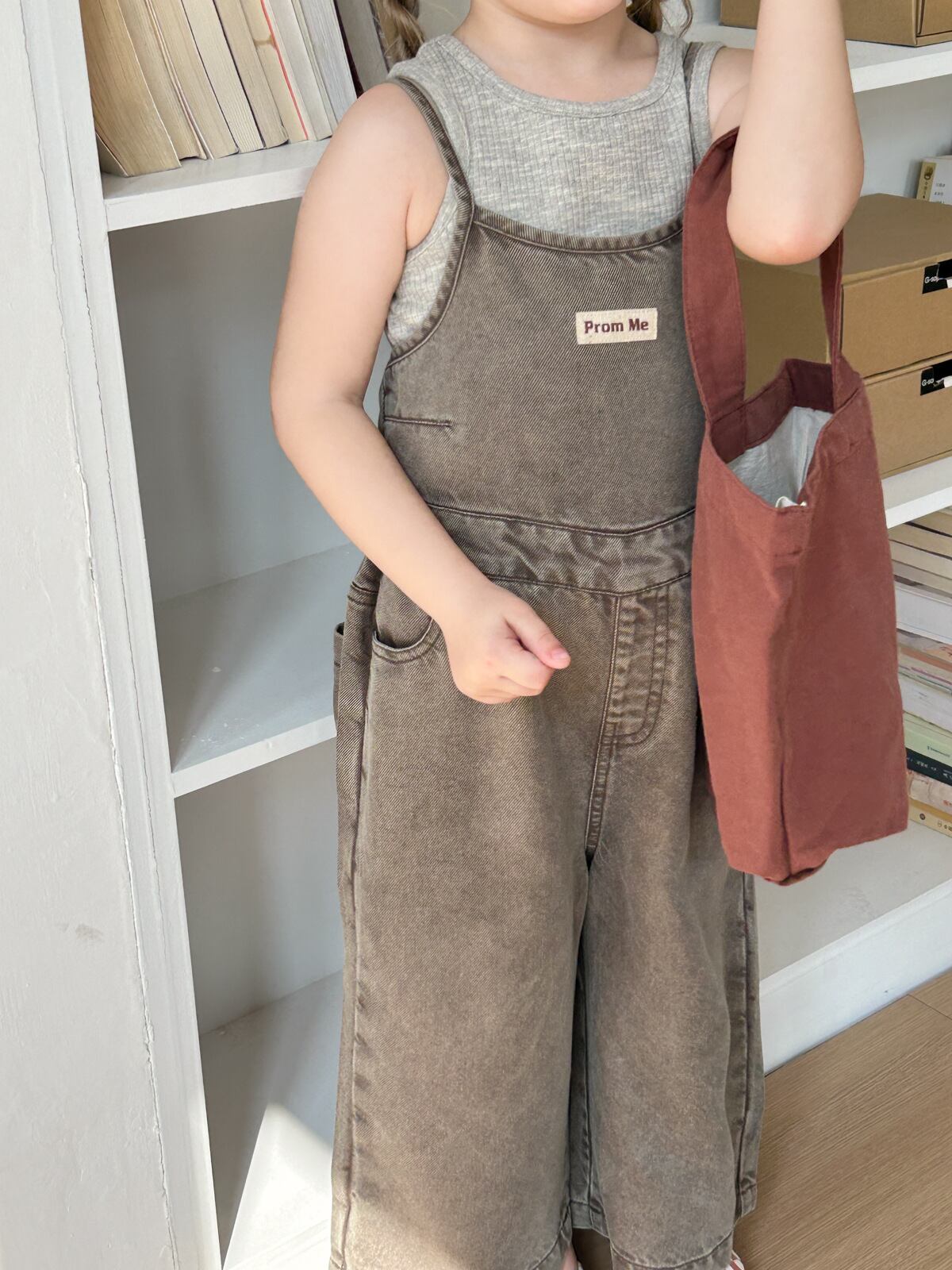 2点セット セットアップ キッズ 女の子 ニットベスト デニムオーバーオール 綿 柔らかな肌触り 無地 ウエストゴム ミドルウエスト スポーティ カジュアル 普段使い ブラウン グレー