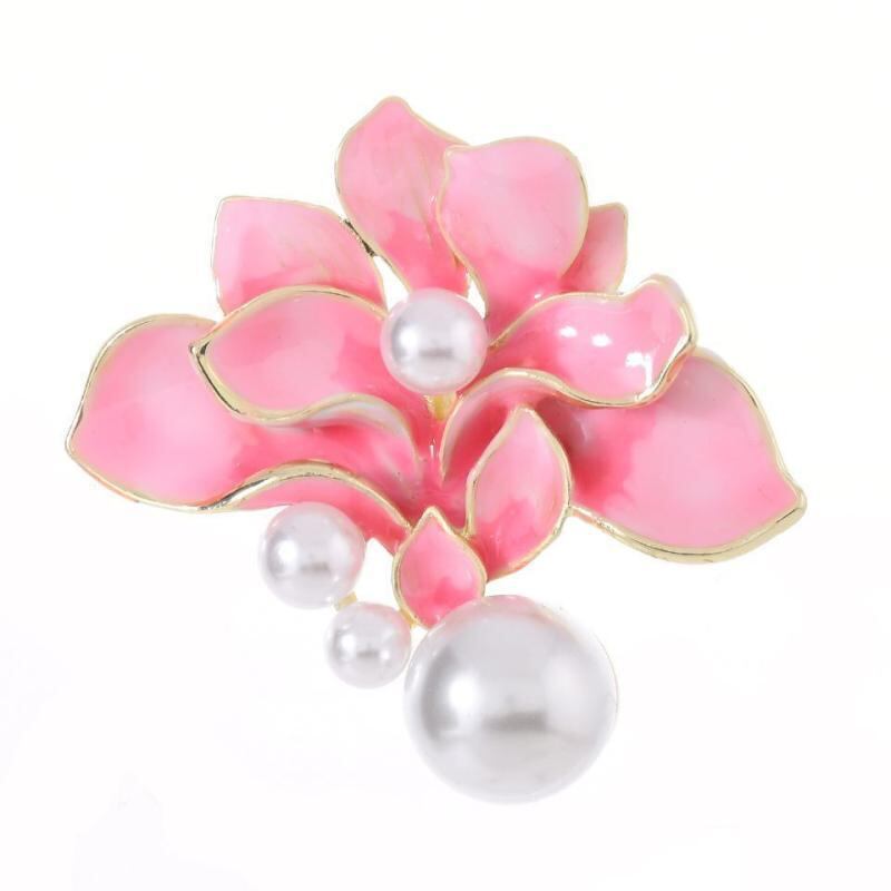 ブローチ レディース ピンク 民族風 花 フラワーモチーフ ラメ釉薬 エナメル加工 亜鉛合金 フェイクパール エレガント 上品 レトロ 結婚式 パーティー 旗袍 漢服 胸元カバー はだけ防止 アクセサリー