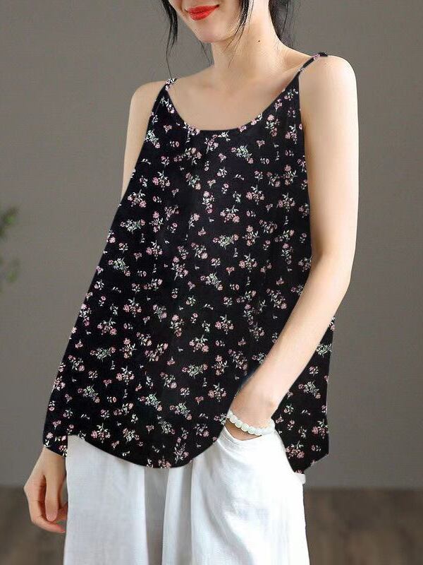 キャミソール レディース 夏 レトロ ヴィンテージ プリント 総柄 幾何学模様 ゆったり ルーズ ノースリーブ ショート丈 クロップド丈 インナー トップス アウター レイヤードスタイル ポリエステル ガーリー フェミニン 普段使い デイリーユース