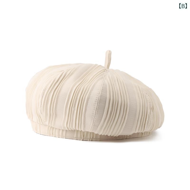 ベレー帽 レディース 薄手 軽量 プリーツ 小顔効果 韓国風 オールシーズン カボチャベレー 画家ベレー おしゃれ 上品 普段使い 紫外線対策 日よけ 綿混 ポリエステル ブラック アイボリー 春秋