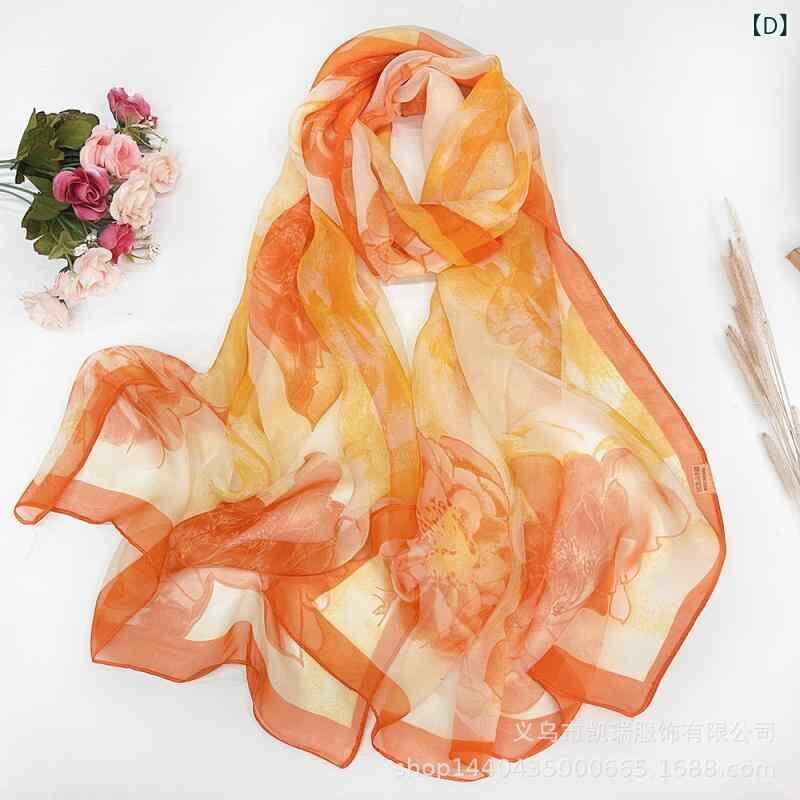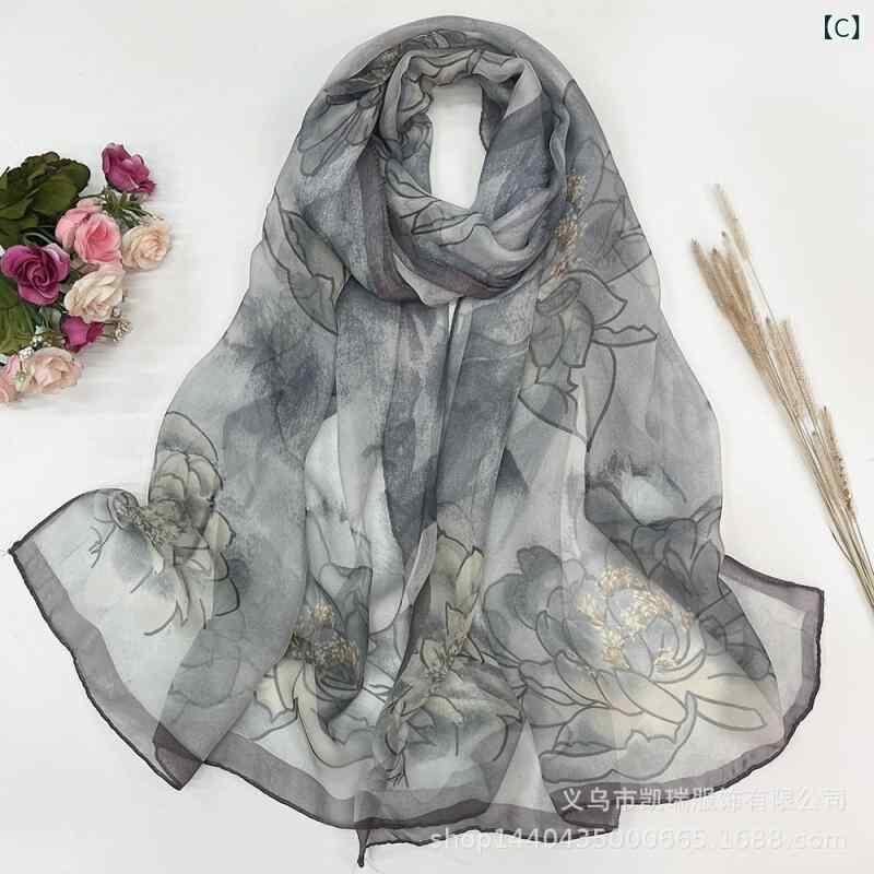 スカーフ ストール レディース 女性用 蓮柄 プリント 薄手 軽量 シルク調 再生繊維 日よけ UVカット 日焼け防止 オールシーズン 普段使い オフィス 通勤 フォーマル カジュアル 長め