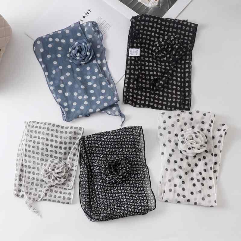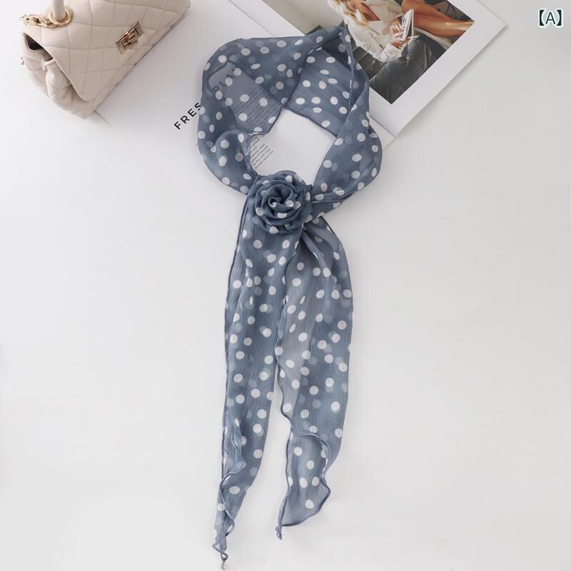 スカーフ レディース インフルエンサー ドット柄 水玉模様 プリント 薄手 軽量 エレガント 首元カバー 夏物 ポリエステルの質感 コーデしやすい 首元ケア おしゃれなネッカチーフ