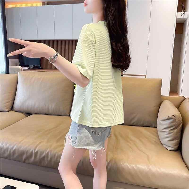 Tシャツ レディース 半袖 高級感 ワッフル素材 立体フラワーモチーフ ラウンドネック ゆったりシルエット 綿混紡 ストリートカジュアル