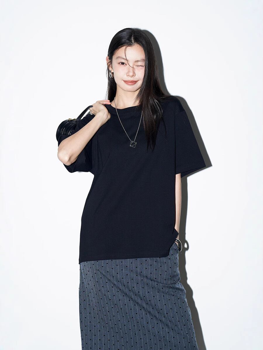 Tシャツ レディース 半袖 無地 クルーネック ゆったり 大きいサイズ 綿 上質コットン 韓国風 イージーケア 通勤 オフィス デイリー トップス カットソー 体型カバー シンプル カジュアル ブラック ホワイト
