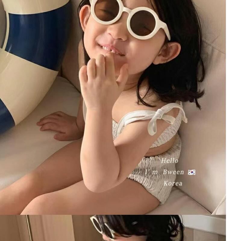 水着 女の子 韓国風 ストライプ柄 吊り紐 セパレート スイート キュート おしゃれ エレガント ツーピース スイムウェア プール ビーチ 海水浴 夏 ナイロン グリーン ホワイト