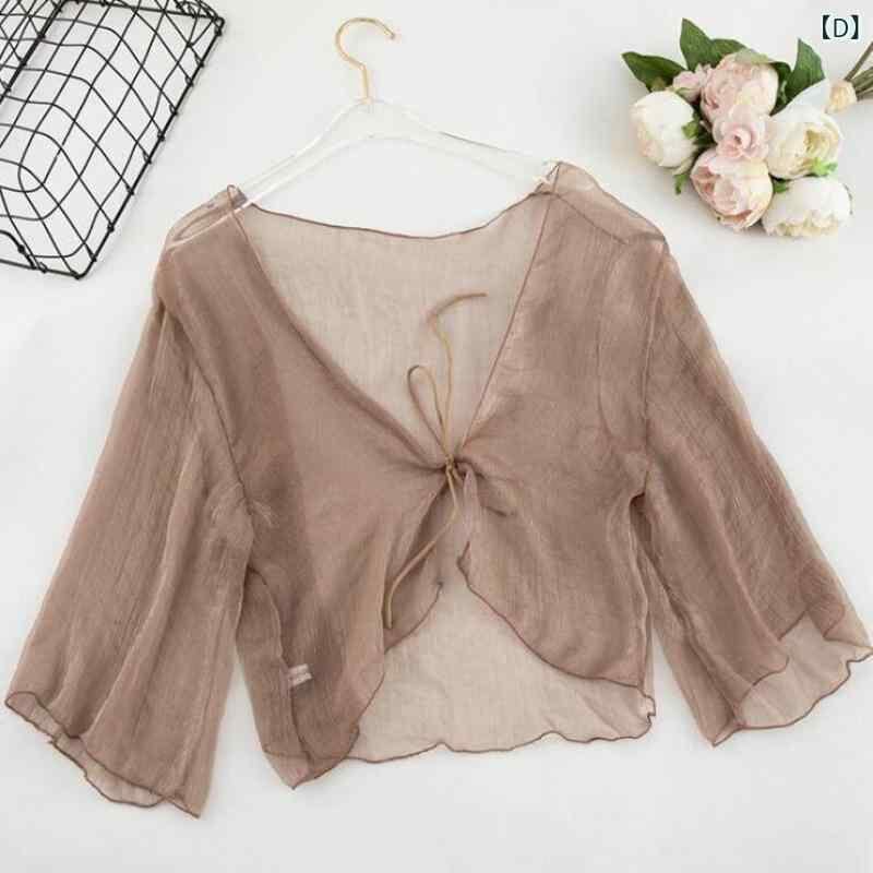 カーディガン レディース ショート丈 シフォン レース ボレロ UVカット 長袖 Vネック きれいめ オフィス 通勤 カジュアル キャミソールワンピース 羽織り