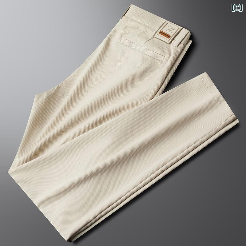 パンツ メンズ 高級感 ドレープ感 薄手 スリム ストレート スラックス ポリエステル ストレッチ 通気性 耐摩耗性 形態安定 ビジネス カジュアル 通勤 オフィスカジュアル 普段使い