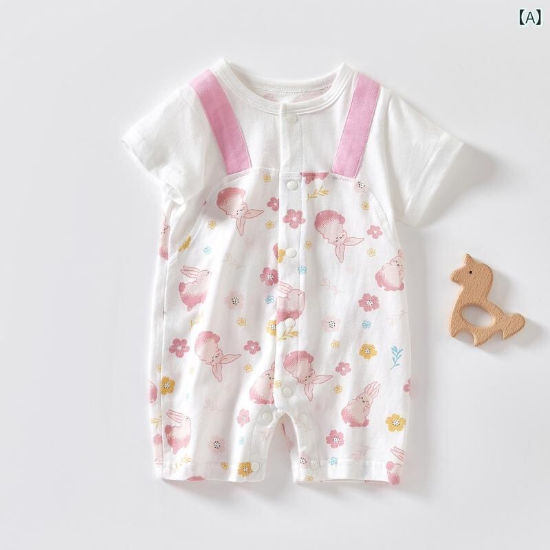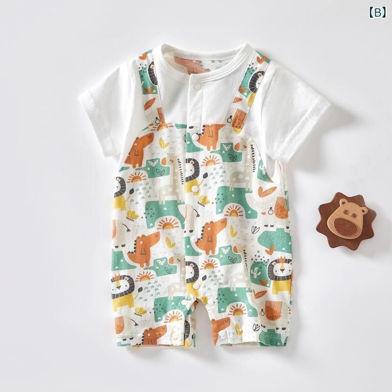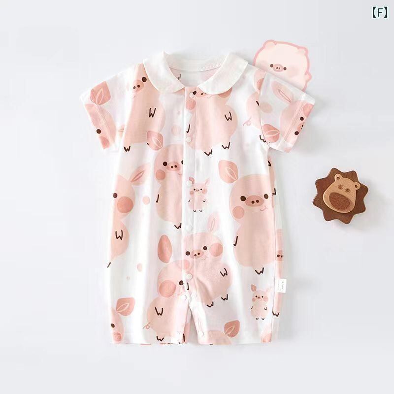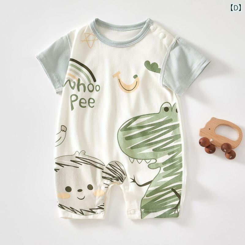 ロンパース ベビー 赤ちゃん 夏用 薄手 半袖 綿100% コットン 新生児 乳幼児 1-3歳頃向け 通気性 涼しい 肌に優しい 安心 アニマル柄 ルームウェア カバーオール つなぎ