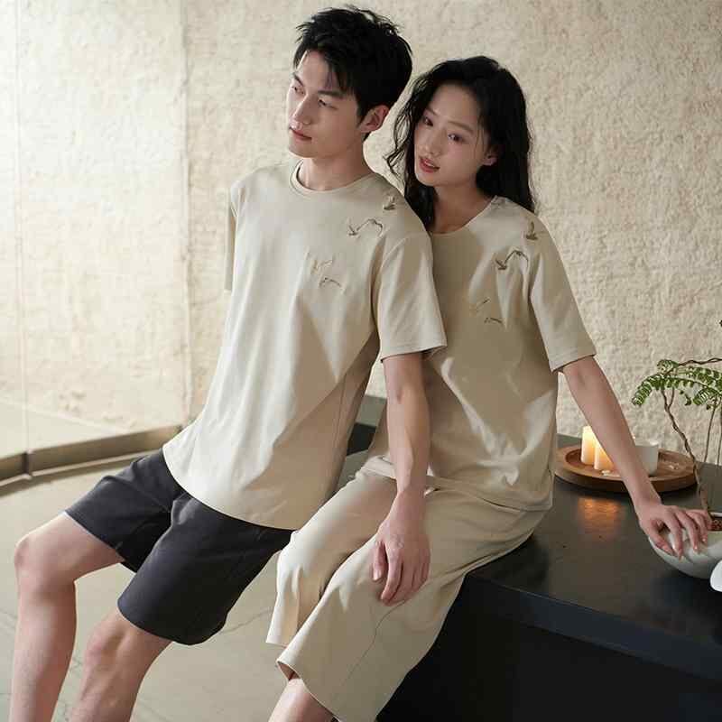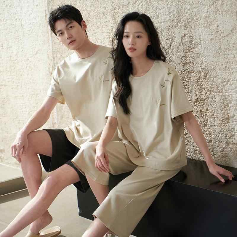 ルームウェア 男女兼用 カップル 綿 コットン 半袖 クルーネック 丸首 七分丈パンツ クロップドパンツ パジャマ 部屋着 外出OK ワンマイルウェア カジュアル セットアップ 2点セット 快適 通気性 涼しい リラックス