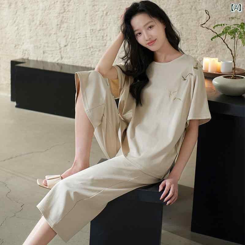 ・カテゴリ: パジャマ・主な素材: 綿95%以上・スタイル: 中国風・デザイン: プルオーバー・厚さ: 中程度・ネックライン: クルーネック・袖丈: 3分袖・パンツ丈: 7分丈・特徴: カジュアル、通気性、睡眠、入浴、抗菌、ルームウェア、涼感、快適、普段使い可・サイズ展開: M, L, XL, XXL, XXXL