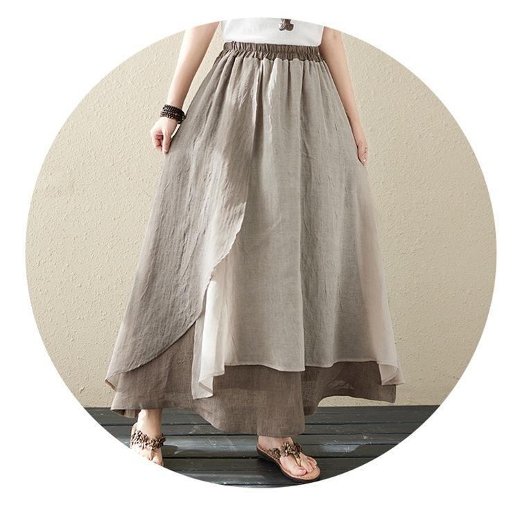 Aライン ロングスカート レディース 大きいサイズ ぽっちゃりさん 体型カバー 細見え 着痩せ 低身長 小柄さん デザイン 個性的 アシンメトリー 変形 イレギュラーヘム フリル 綿麻 | cybercart