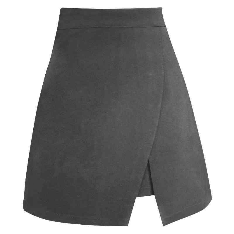 スカート レディース 大きいサイズ プラスサイズ ぽっちゃり ハイウエスト 体型カバー 細見え アシンメトリー スリット Aライン ミニスカート 黒 ブラック ポリエステル 微ストレッチ カジュアル 普段使い