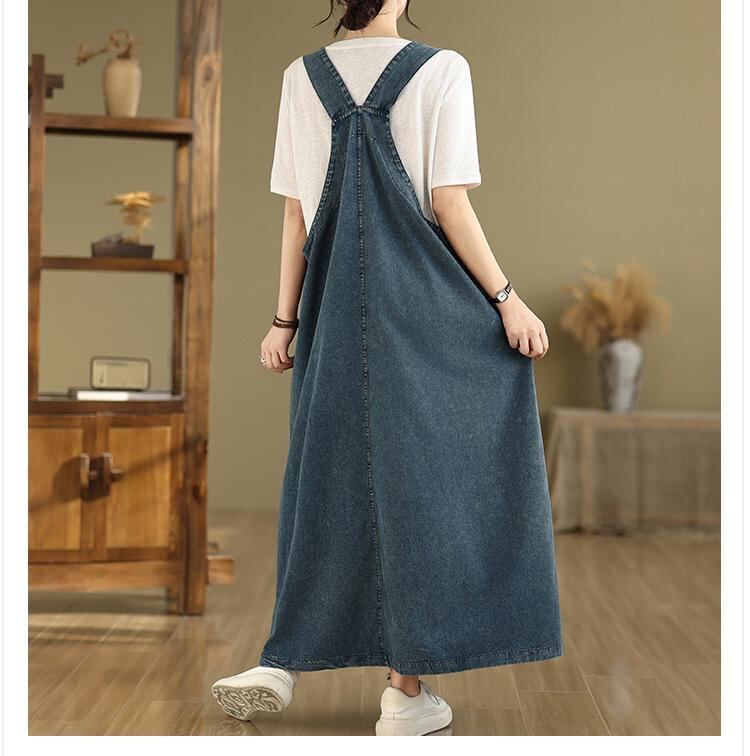 ワンピース レディース レトロ デニム ジャンパースカート サロペットスカート ゆったり 大きいサイズ ロング丈 体型カバー レトロブルー カジュアル 普段使い 春 夏 秋