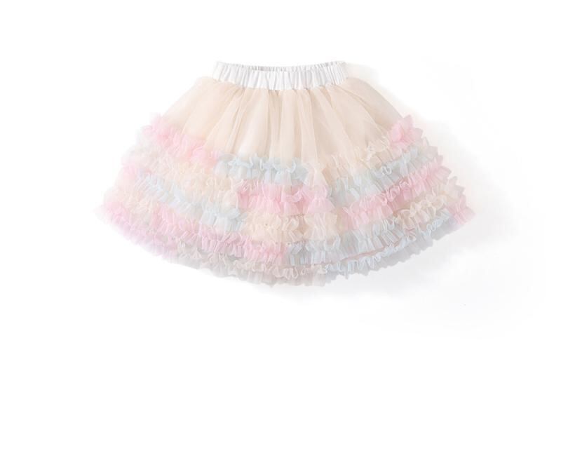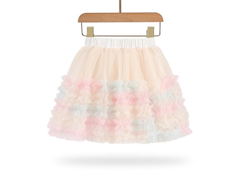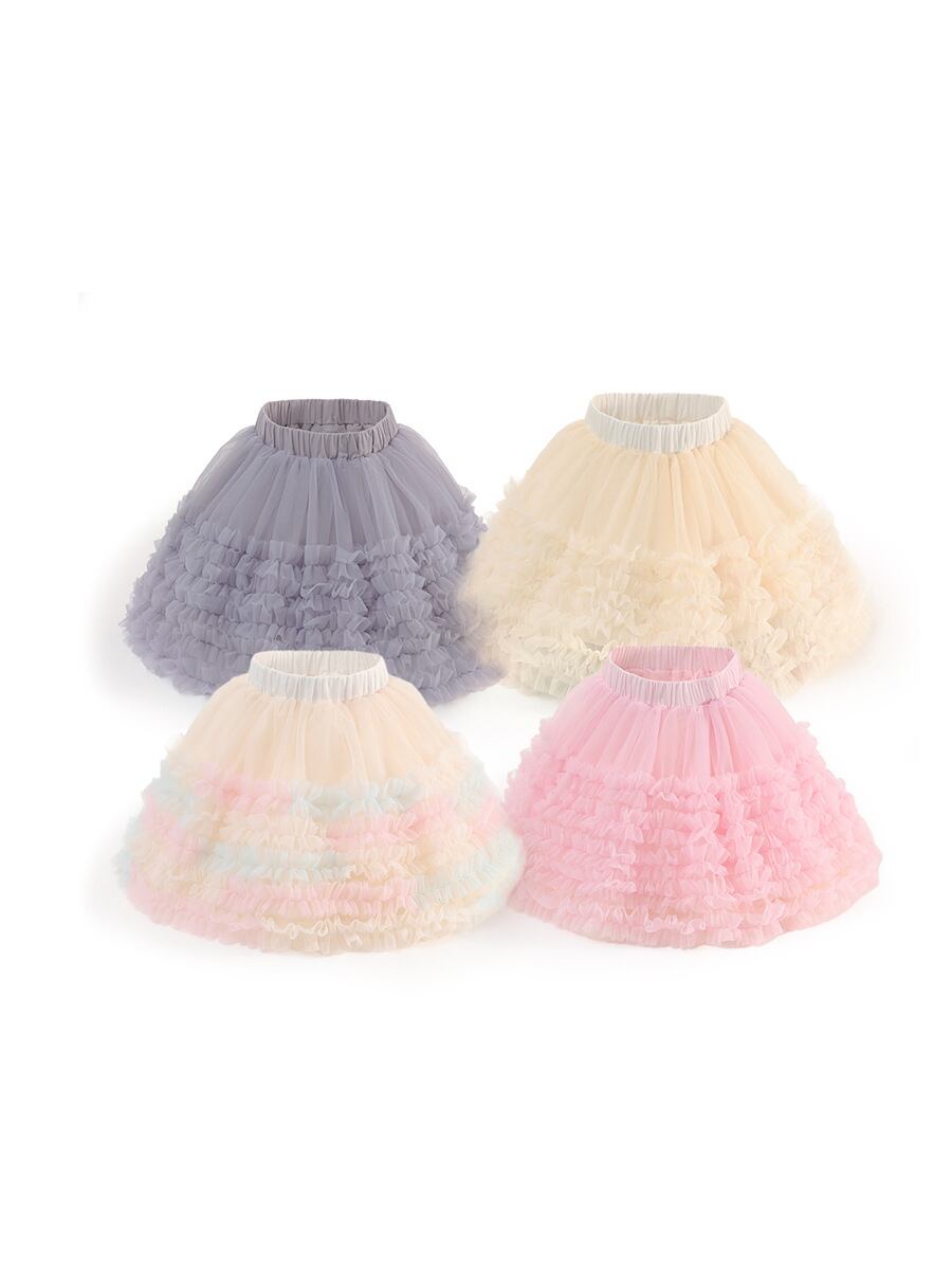 スカート 女の子 子供 プリンセス風 お姫様 チュールスカート チュチュ パニエ ティアード 段々フレア ふわふわ ボリューム感 メッシュ ナイロン 綿混 発表会 お出かけ ダンス衣装 普段使い カラフル ピンク ベージュ グレー