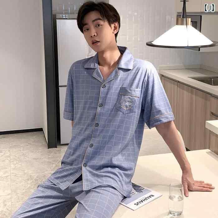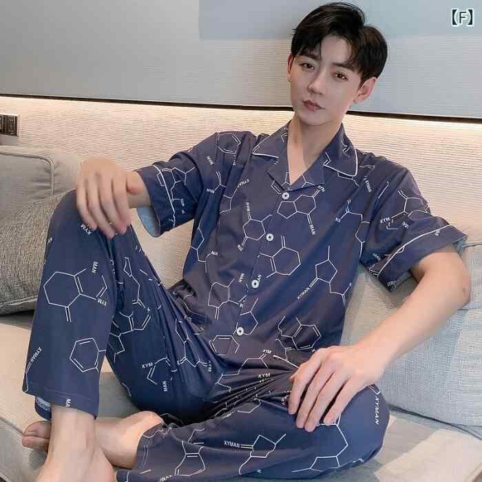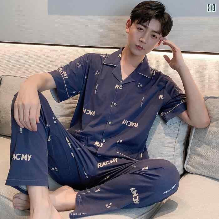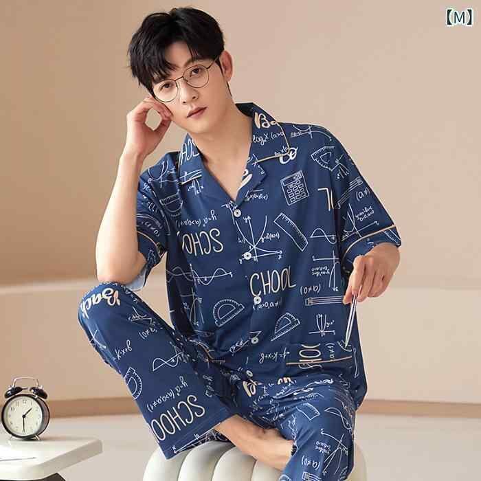 ルームウェア メンズ 上下セット ポリエステル素材 綿ライク 七分袖 襟付き ロングパンツ カジュアル シンプル ワンマイルウェア 部屋着 パジャマ 外出着 春 夏 快適