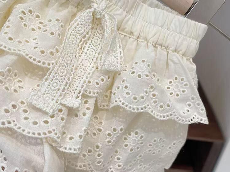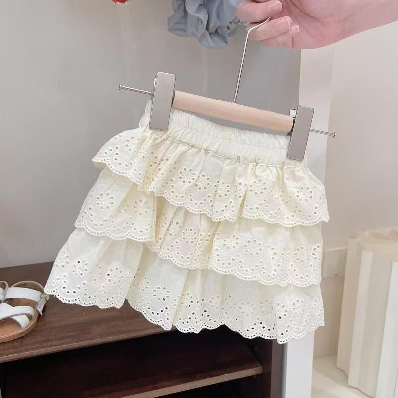 キュロット ベビー キッズ 女の子 肌に優しい ショート丈 レース フリル スカパン ショートパンツ プリンセスデザイン おしゃれ かわいい トレンド 韓国風 綿混 柔らかい 普段使い アプリコット