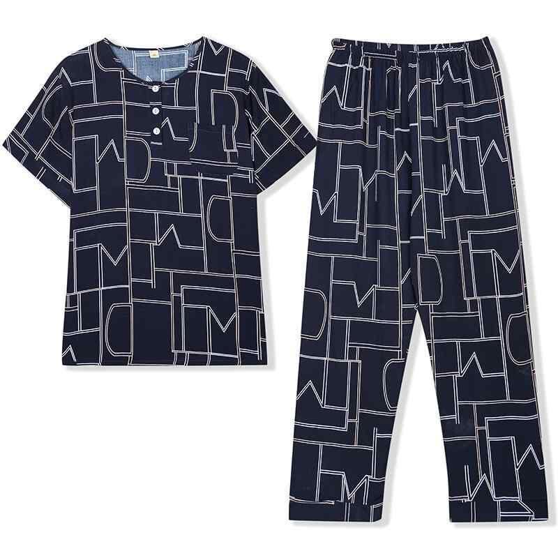 パジャマ メンズ 半袖 長ズボン 上下セット ルームウェア 再生繊維 レーヨン 薄手 吸湿速乾 通気性 接触冷感 快適 クルーネック ポケット付き