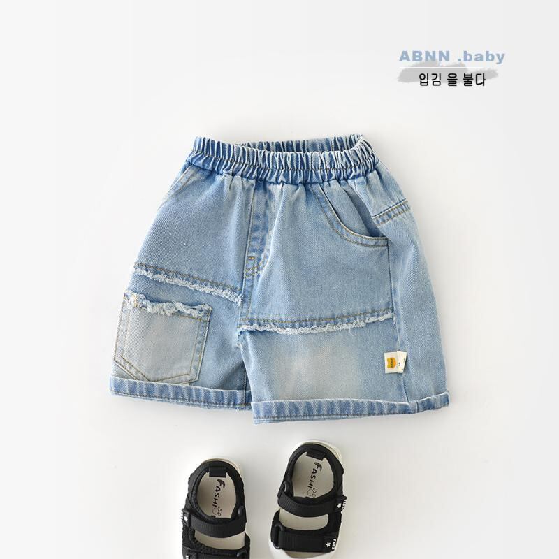 ショートパンツ 男の子 ベビー 幼児 デニム ウォッシュ加工 綿混 コットンブレンド ポケット付き ミッドウエスト ウエストゴム 夏服 カジュアル ベーシック 柔らか素材 Aクラス安全基準