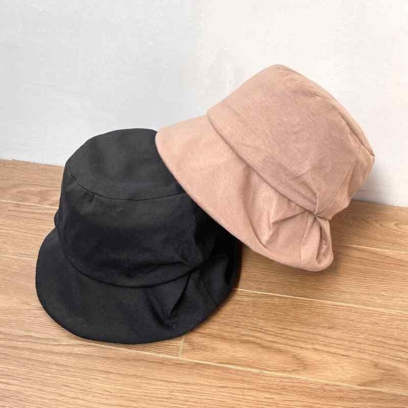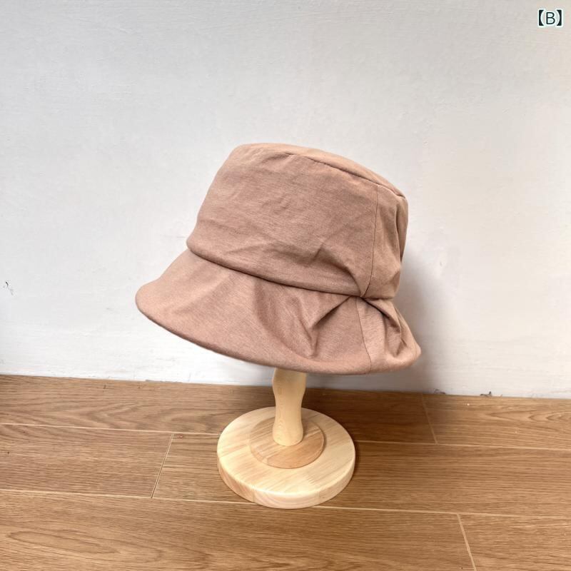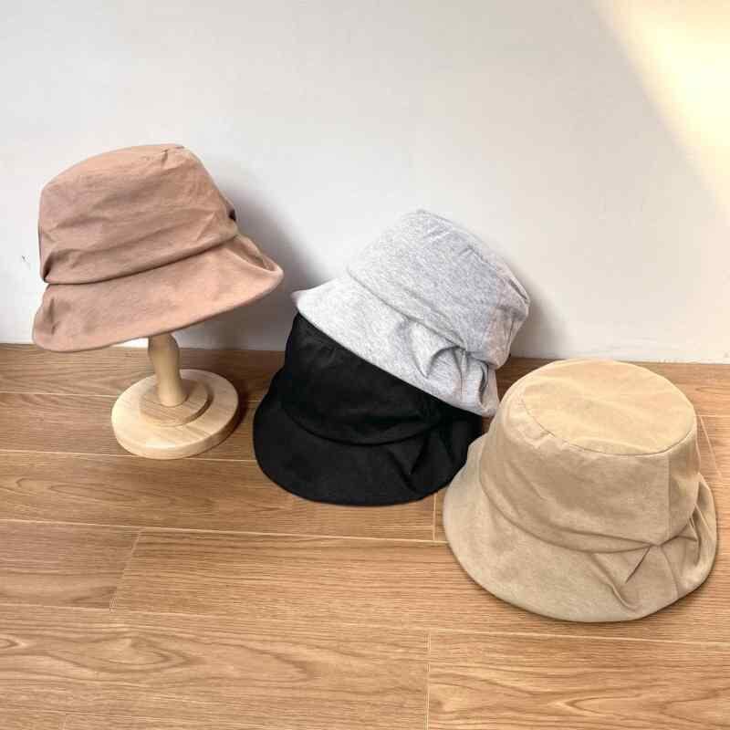 バケットハット 日系 レトロ プリーツ加工 カジュアル 普段使い 万能 ポリエステル素材 ウォッシャブル お手入れ簡単 保温 防風 フラットトップ ショートブリム 黒 カフェブラウン カーキ グレー