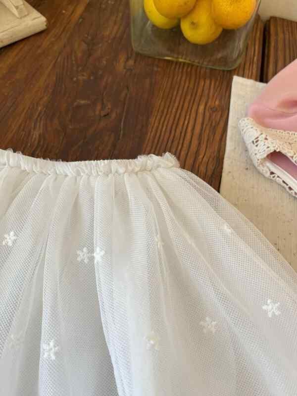 スカート 女の子 レース チュール プリンセスドレス バレエ衣装 かわいい スイート ポリエステル ガーゼ 裏地コットン ソフト ボリューム 半身丈 3歳から8歳 100cmから140cm対応 ホワイト