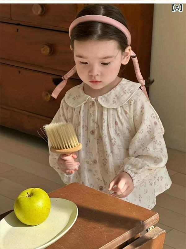シャツ 女の子 ベビー キッズ 小花柄 うさぎ柄 フリル レギンス 綿素材 長袖 韓国風 襟付き 柔らか素材 春秋物 上下セット 80 90 100cm