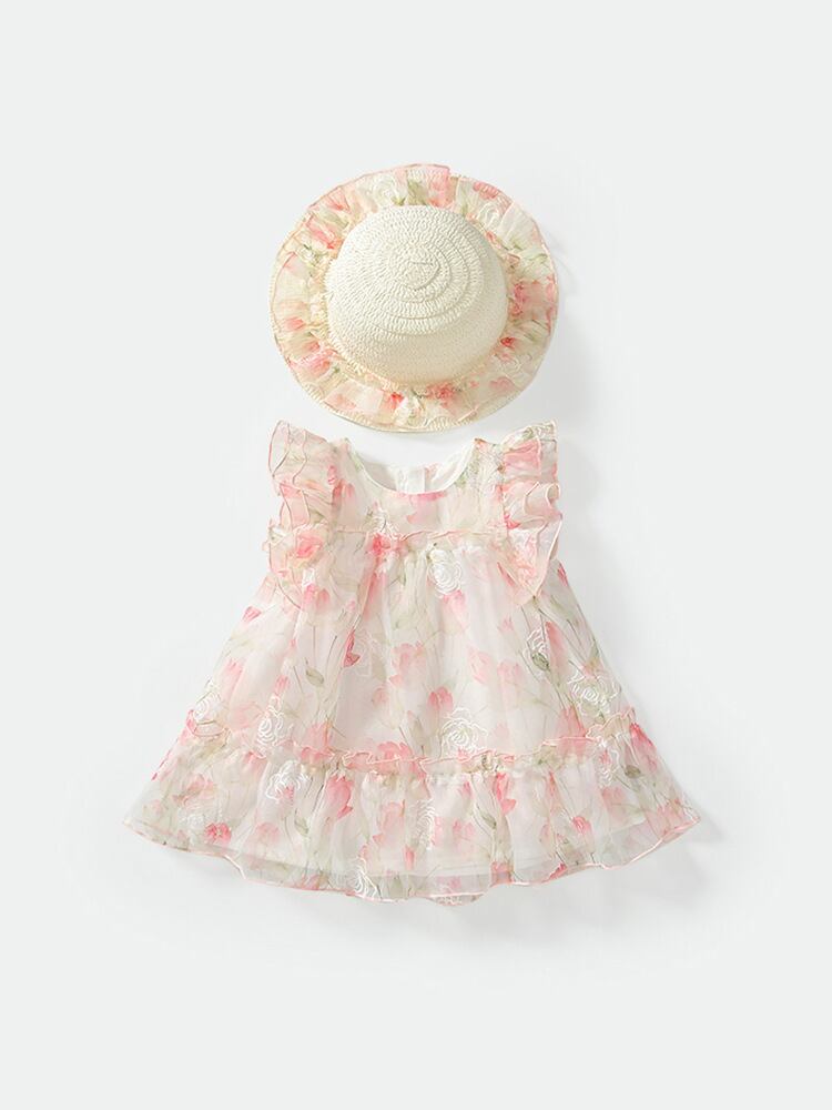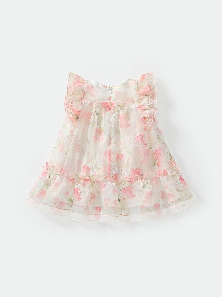 ワンピース 女の子 ベビー 幼児 夏服 小花柄 ピンク プリンセス ノースリーブ Aライン ビーチドレス ポリエステル コットン裏地 やわらか 80cm 90cm 100cm 110cm