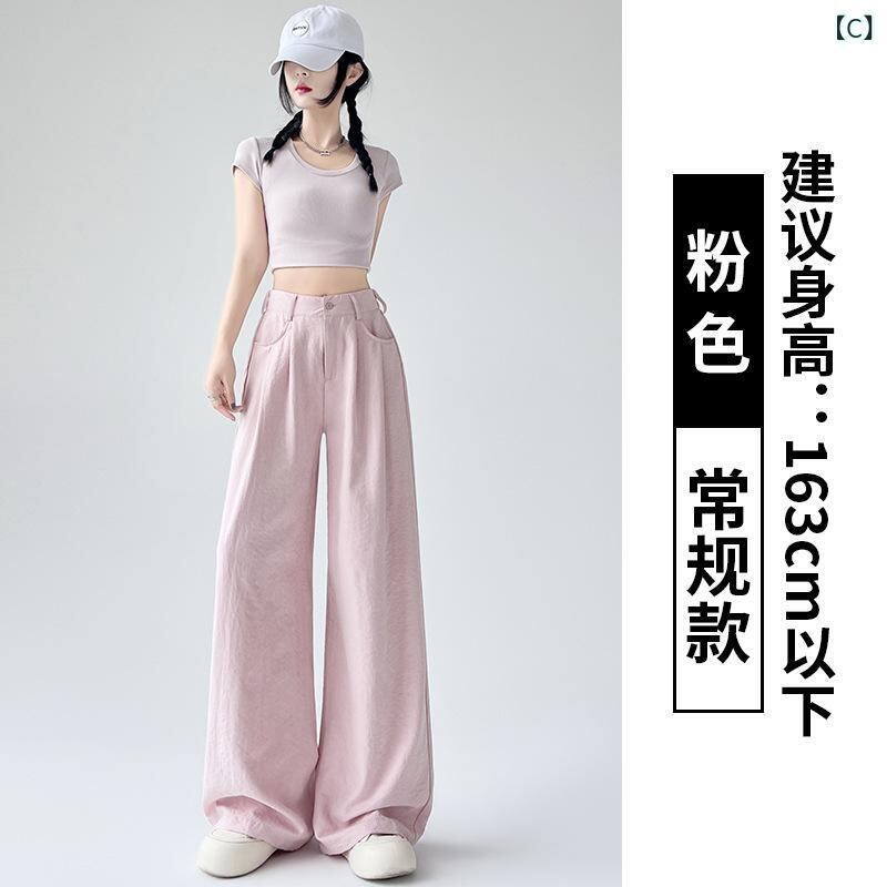ワイドパンツ レディース ハイウエスト とろみ素材 落ち感 ゆったり スラックス 薄手 高級感 通勤 オフィス カジュアル リラックス 再生繊維 伸縮性 イージーケア フルレングス ボトムス