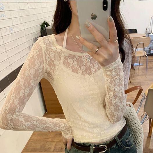 トップス レディース ホルターネック キャミソール レース カーディガン 2点セット シアー 薄手 かぎ針編み ポリエステル 無地 甘辛ミックス 夏服