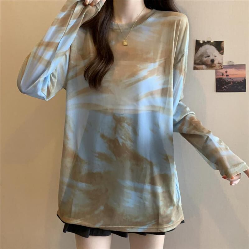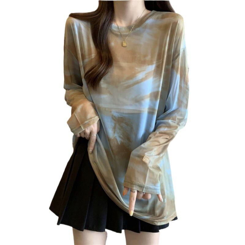 チュニック レディース 大きいサイズ 薄手 接触冷感 長袖 UV対策 タイダイ柄 シアー素材 ゆったり 体型カバー ラウンドネック プルオーバー 夏 普段着 きれいめカジュアル