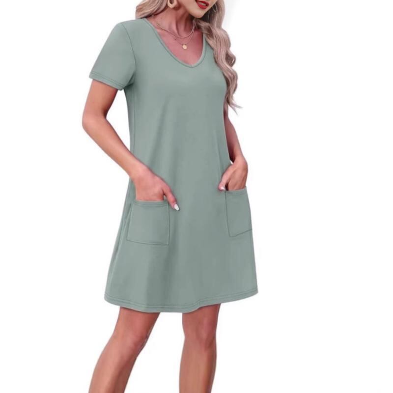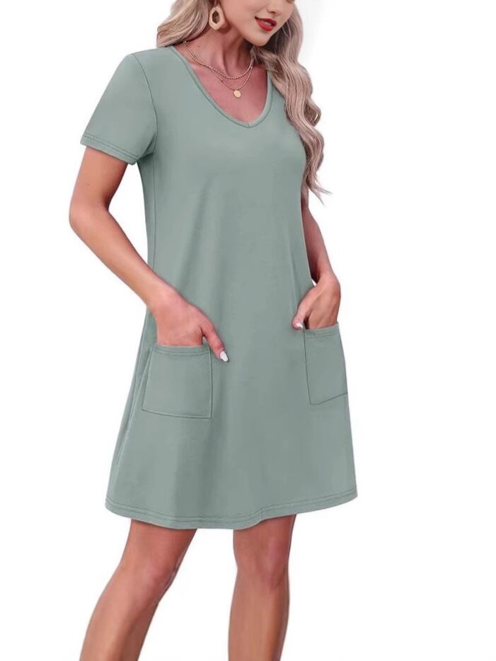 ・カテゴリ: ワンピース・スタイル: オフィススタイル、カジュアル・主な素材: ポリエステル90%-95%・副素材: ポリウレタン30%以下・ネックライン: Vネック・袖丈: 半袖・袖タイプ: レギュラー袖・丈: ミモレ丈・スカートタイプ: Aライン・ウエスト: ゆったり・開閉タイプ: プルオーバー・柄: 小花柄・加工: プリント・デザイン要素: ポケット・カラー展開: ブラック、ライトブルー、ルージュ、ライトグリーン、ストライプ、グリーン花柄、リーフ、ブルー小花柄・サイズ展開: S、M、L、XL、XXL