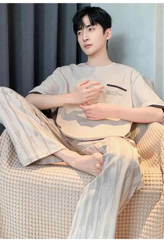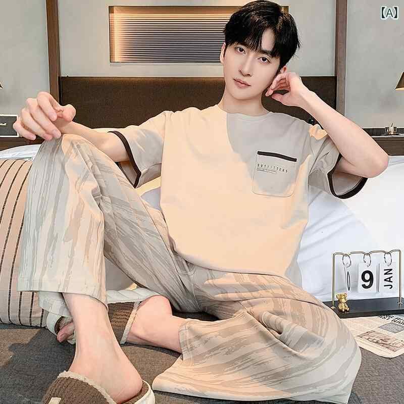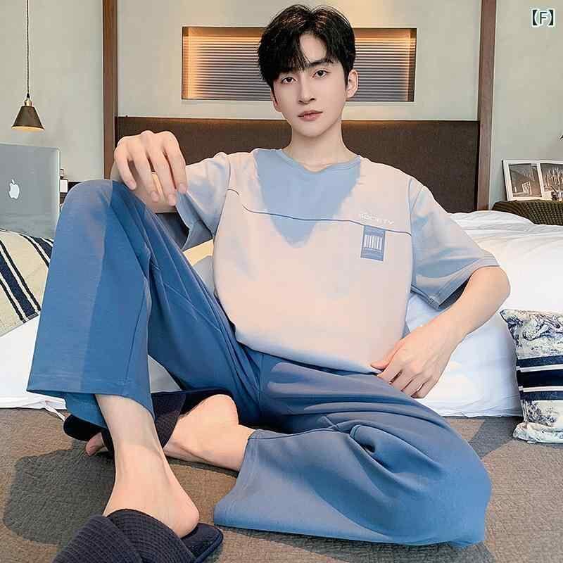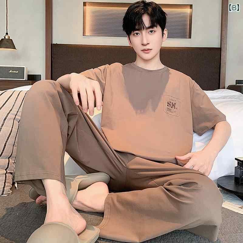 パジャマ メンズ 男性用 綿100% コットン クルーネック 半袖 プルオーバー ロングパンツ ルームウェア 部屋着 ワンマイルウェア シンプル カジュアル リラックスウェア 快適 通気性 伸縮性
