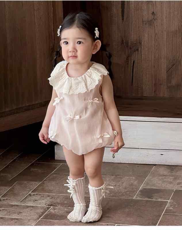 ロンパース 女の子 ベビー 夏 薄手 ノースリーブ フリル リボン カバーオール 新生児 0ヶ月 1歳 お宮参り 100日祝い お出かけ着 プリンセススタイル 上品 ピンク ポリエステル プルオーバー 三角タイプ