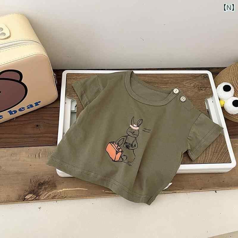 ベビー服 男の子 夏 半袖 Tシャツ ショートパンツ セットアップ 韓国ファッション カジュアル アニマル柄 キャラクタープリント 薄手 綿 コットン 柔らかい 通気性 普段着 部屋着 2点セット 上下セット