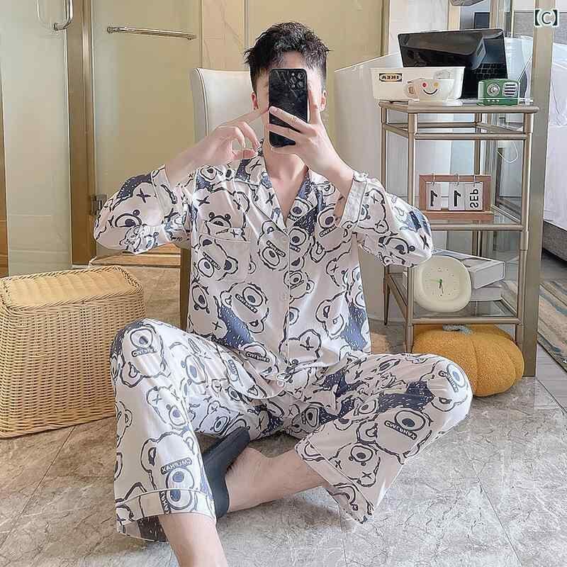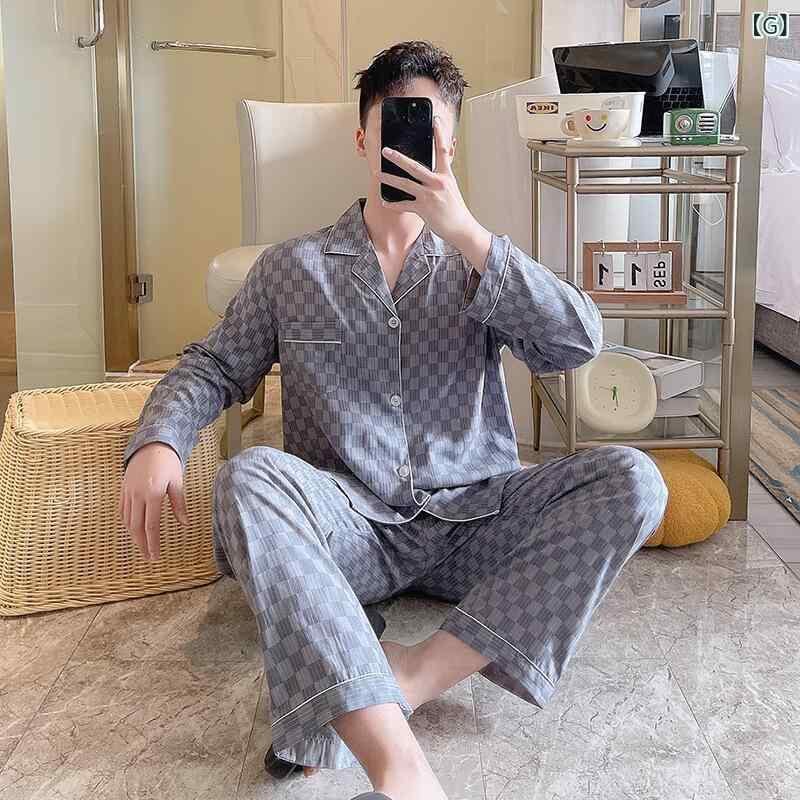 パジャマ メンズ ルームウェア レーヨン素材 襟付き長袖 上下セット 薄手 大きいサイズ ゆったり 春夏秋 快適 通気性 部屋着 カジュアル ワンマイルウェア ホテル着