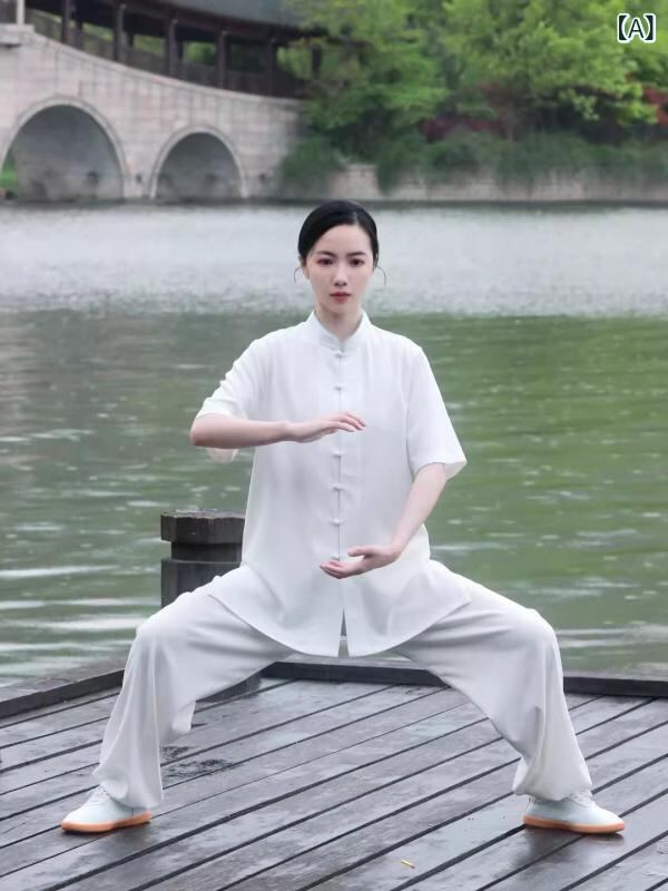 太極服 男女兼用 綿麻 上下セット 高級感 薄手 春夏 練習着 武術服 演武服 太極拳ウェア カンフー服 稽古着 武道着 気功 ヨガ ダンス 演舞 発表会用 通気性 再生繊維 ポリエステル混紡 吸湿速乾 ホワイト ブラック グレー ピンク