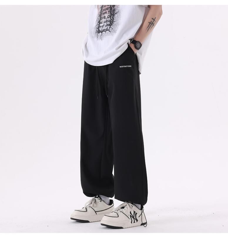 カジュアルパンツ メンズ 接触冷感 通気性 薄手 ストレート ドレープ ロングパンツ ハイウエスト ドローコード ストレッチ ポリエステル素材 スポーツ