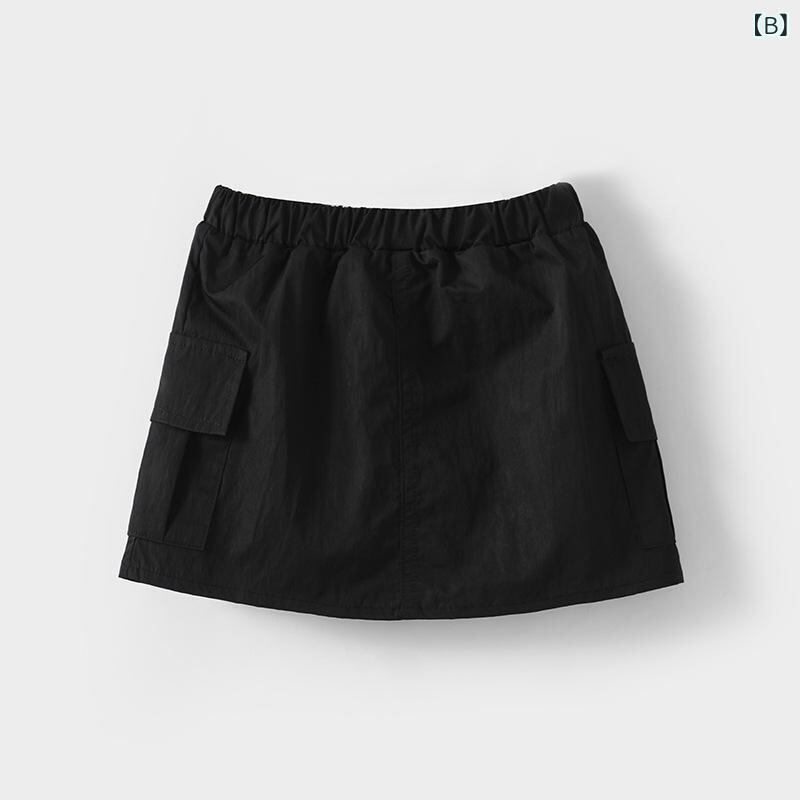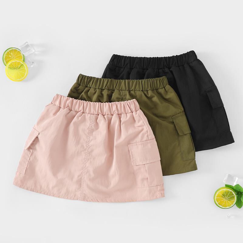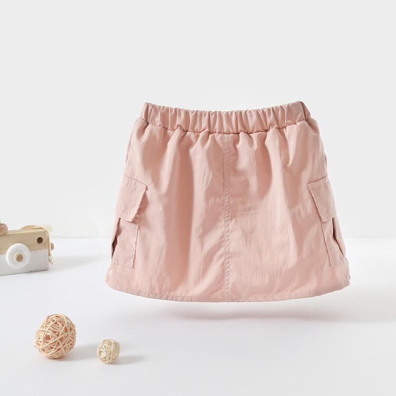 ショートスカート キッズ 女の子 女児 ボトムス 夏服 ピンク ワークスカート カーゴスカート ミリタリー風 ポリエステル 通気性 軽量 かわいい カジュアル 普段使い お出かけ
