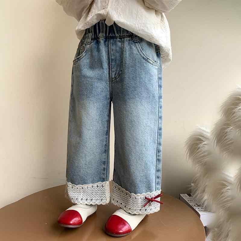 デニムパンツ キッズ 女の子 ガールズ フリル リボン ロング丈 フルレングス コットン 綿 ミドルウエスト ゴムウエスト カジュアル 普段使い 通園 通学 お出かけ こども 服 ボトムス