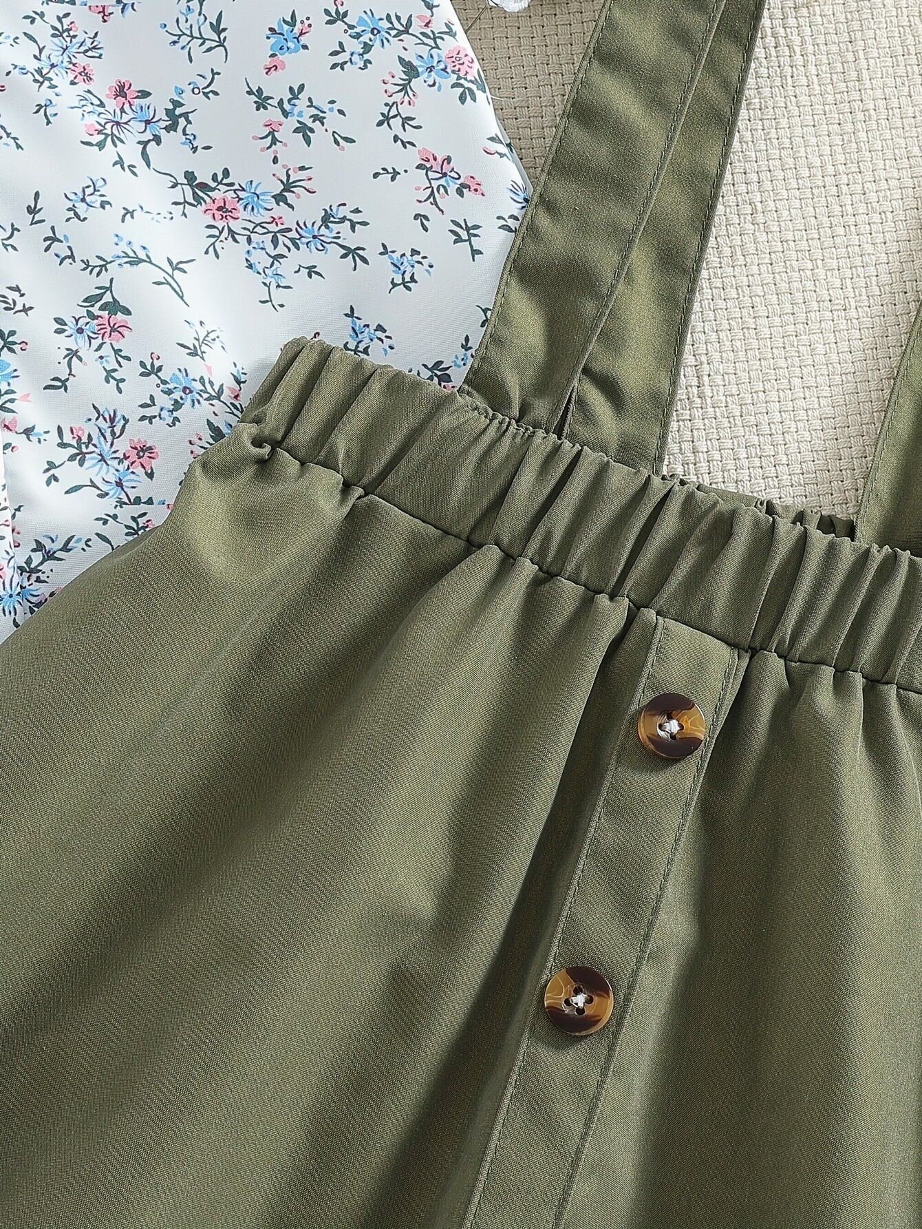 セットアップ 女の子 キッズ 夏 田園風 小花柄 ブラウス ジャンパースカート ツーピース 子供服 ナチュラル かわいい おしゃれ 半袖 スカートセット ポリエステル 普段使い お出かけ 春 秋