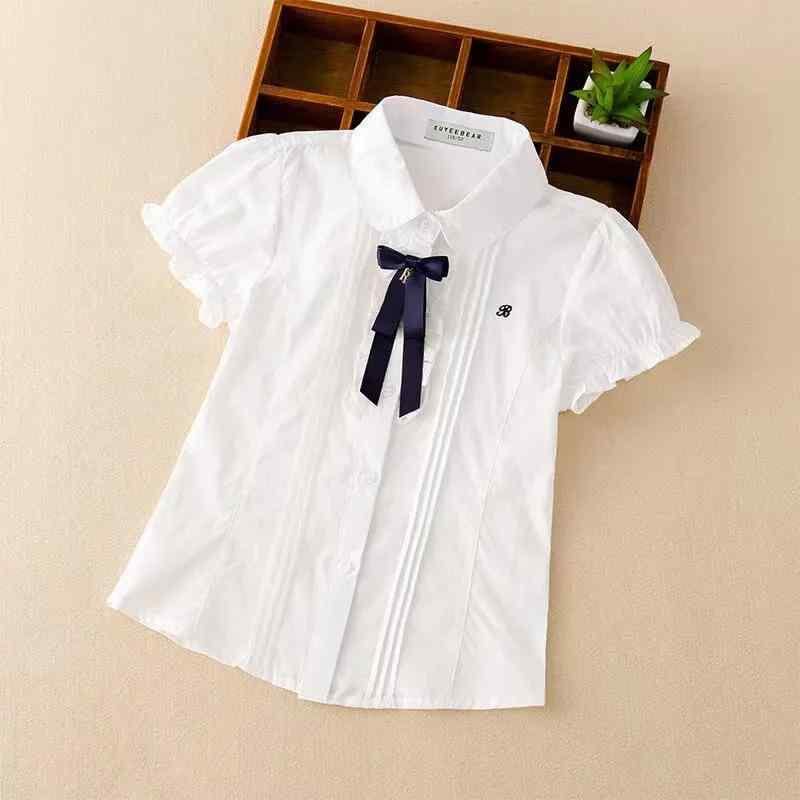 シャツ 女の子 キッズ 子供 半袖 トップス ブラウス 綿 コットン素材 白 ホワイト おしゃれ カジュアル スクール 通学 かわいい 快適 通気性 スクエアネック リボン