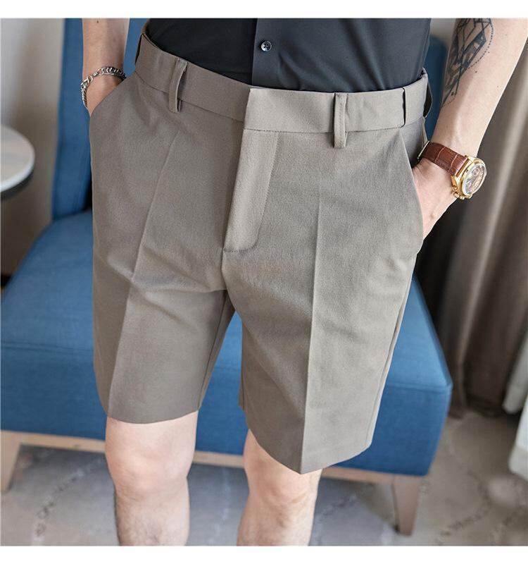 ショートパンツ ハーフパンツ メンズ カジュアル ビジネス ビジカジ きれいめ 夏用 薄手 軽量 高級感 無地 スラックス ポリエステル ストレッチ 形態安定 ストレートシルエット 五分丈