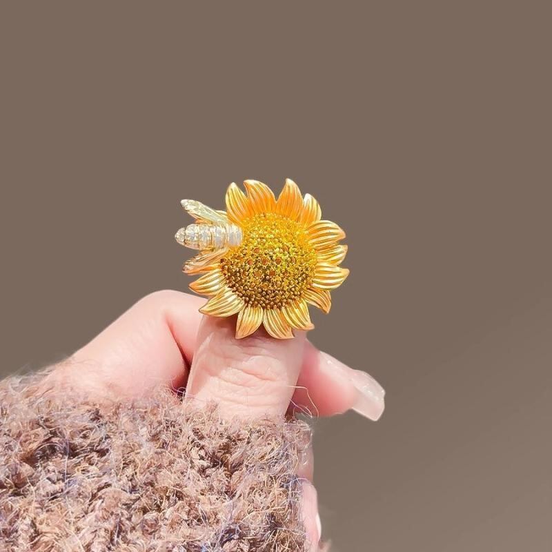 ブローチ レディース 女性用 ミツバチ ひまわり 向日葵モチーフ フラワーデザイン 上品 高級感 繊細 個性的 おしゃれ メタル 合金 普段使い 通勤 オフィス フォーマル カジュアル ワンポイント 華やか 大人可愛い ファッション小物